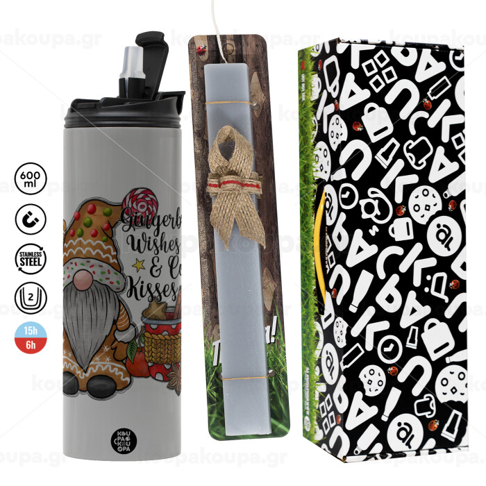 Gingerbread Wishes, Πασχαλινή Λαμπάδα με Travel Tumbler θερμό (600ml, BPA free) & κερί αρωματικό πλακέ (30cm) (ΓΚΡΙ)