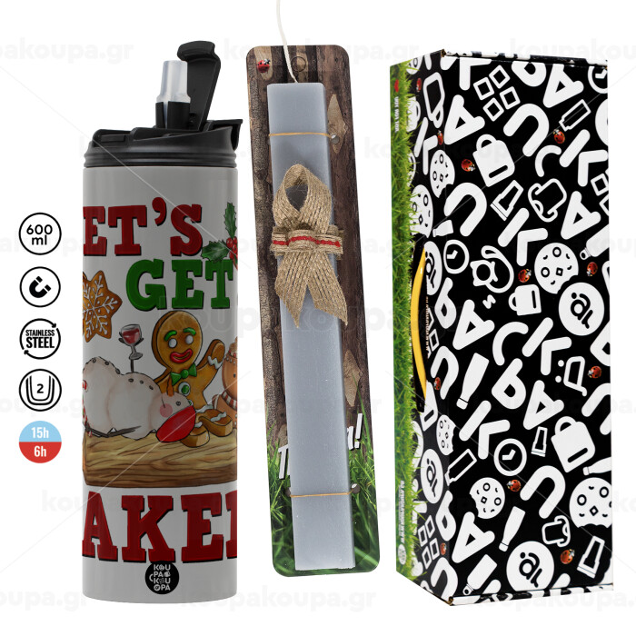 Let's get baked, Πασχαλινή Λαμπάδα με Travel Tumbler θερμό (600ml, BPA free) & κερί αρωματικό πλακέ (30cm) (ΓΚΡΙ)
