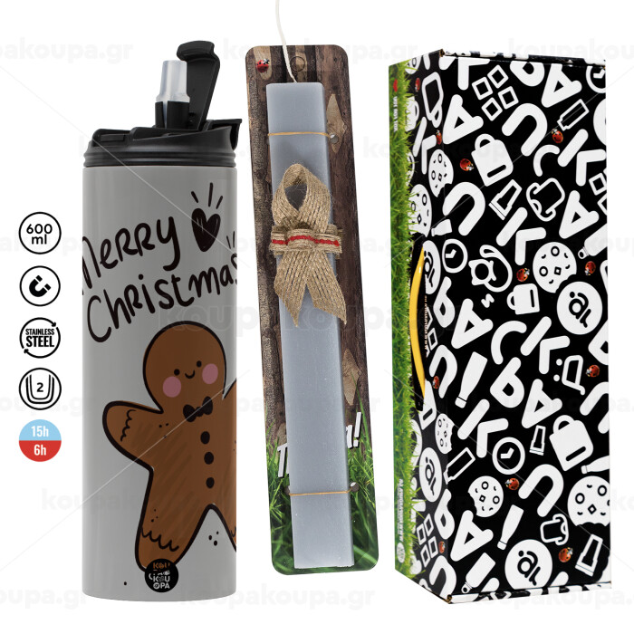 mr gingerbread, Πασχαλινή Λαμπάδα με Travel Tumbler θερμό (600ml, BPA free) & κερί αρωματικό πλακέ (30cm) (ΓΚΡΙ)