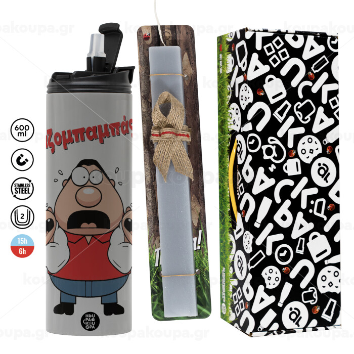 Χαζομπαμπάς σε απόγνωση, Πασχαλινή Λαμπάδα με Travel Tumbler θερμό (600ml, BPA free) & κερί αρωματικό πλακέ (30cm) (ΓΚΡΙ)