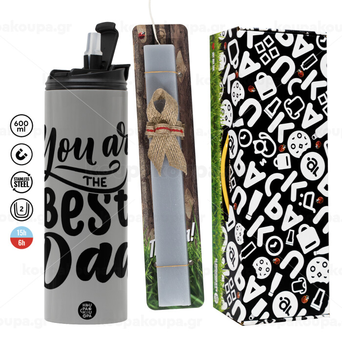 You are the best Dad, Πασχαλινή Λαμπάδα με Travel Tumbler θερμό (600ml, BPA free) & κερί αρωματικό πλακέ (30cm) (ΓΚΡΙ)