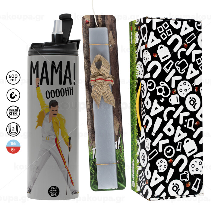 mama ooohh!, Πασχαλινή Λαμπάδα με Travel Tumbler θερμό (600ml, BPA free) & κερί αρωματικό πλακέ (30cm) (ΓΚΡΙ)