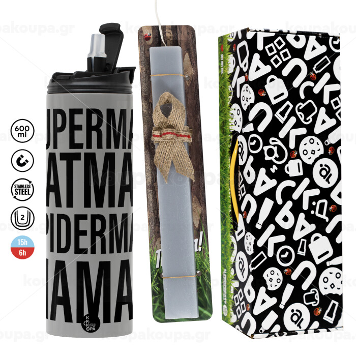 MAMAN, Πασχαλινή Λαμπάδα με Travel Tumbler θερμό (600ml, BPA free) & κερί αρωματικό πλακέ (30cm) (ΓΚΡΙ)
