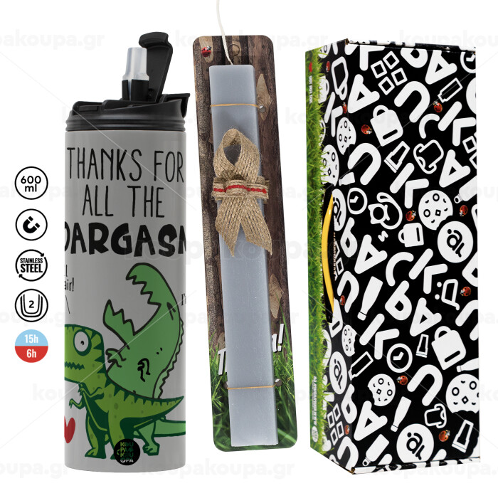 Thanks for all the ROARGASMS, Πασχαλινή Λαμπάδα με Travel Tumbler θερμό (600ml, BPA free) & κερί αρωματικό πλακέ (30cm) (ΓΚΡΙ)
