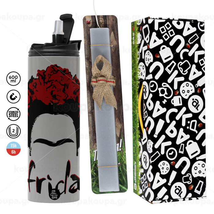 Frida, Πασχαλινή Λαμπάδα με Travel Tumbler θερμό (600ml, BPA free) & κερί αρωματικό πλακέ (30cm) (ΓΚΡΙ)