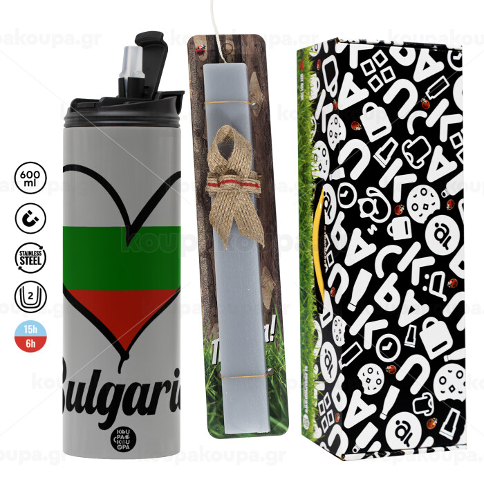 Bulgaria flag, Πασχαλινή Λαμπάδα με Travel Tumbler θερμό (600ml, BPA free) & κερί αρωματικό πλακέ (30cm) (ΓΚΡΙ)