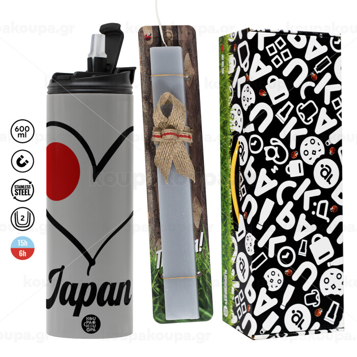 Japan flag, Πασχαλινή Λαμπάδα με Travel Tumbler θερμό (600ml, BPA free) & κερί αρωματικό πλακέ (30cm) (ΓΚΡΙ)