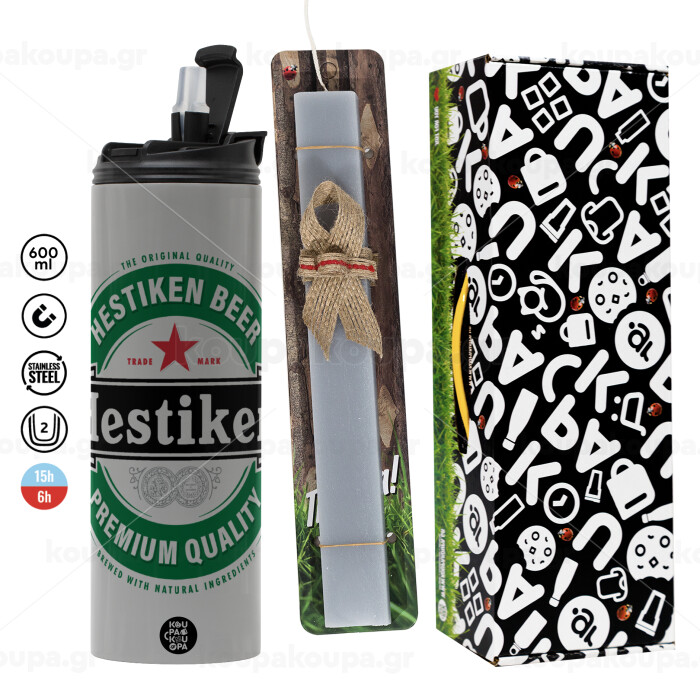 Hestiken Beer, Πασχαλινή Λαμπάδα με Travel Tumbler θερμό (600ml, BPA free) & κερί αρωματικό πλακέ (30cm) (ΓΚΡΙ)