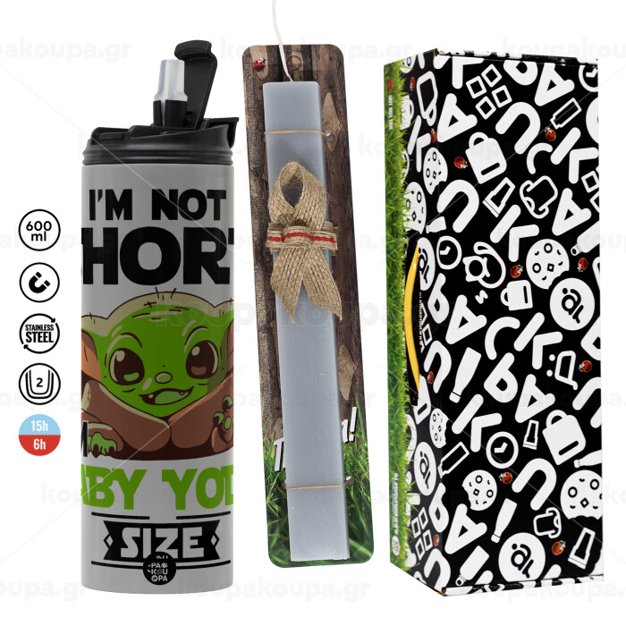 I'm not short, i'm Baby Yoda size, Πασχαλινή Λαμπάδα με Travel Tumbler θερμό (600ml, BPA free) & κερί αρωματικό πλακέ (30cm) (ΓΚΡΙ)