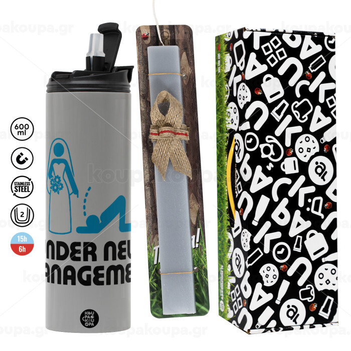 Under new Management, Πασχαλινή Λαμπάδα με Travel Tumbler θερμό (600ml, BPA free) & κερί αρωματικό πλακέ (30cm) (ΓΚΡΙ)