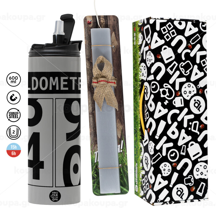 OLDOMETER, Πασχαλινή Λαμπάδα με Travel Tumbler θερμό (600ml, BPA free) & κερί αρωματικό πλακέ (30cm) (ΓΚΡΙ)