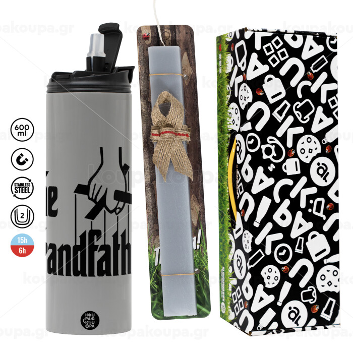 The Grandfather, Πασχαλινή Λαμπάδα με Travel Tumbler θερμό (600ml, BPA free) & κερί αρωματικό πλακέ (30cm) (ΓΚΡΙ)