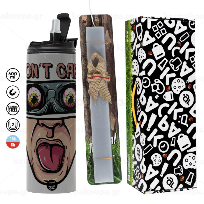 Don't Care, Πασχαλινή Λαμπάδα με Travel Tumbler θερμό (600ml, BPA free) & κερί αρωματικό πλακέ (30cm) (ΓΚΡΙ)