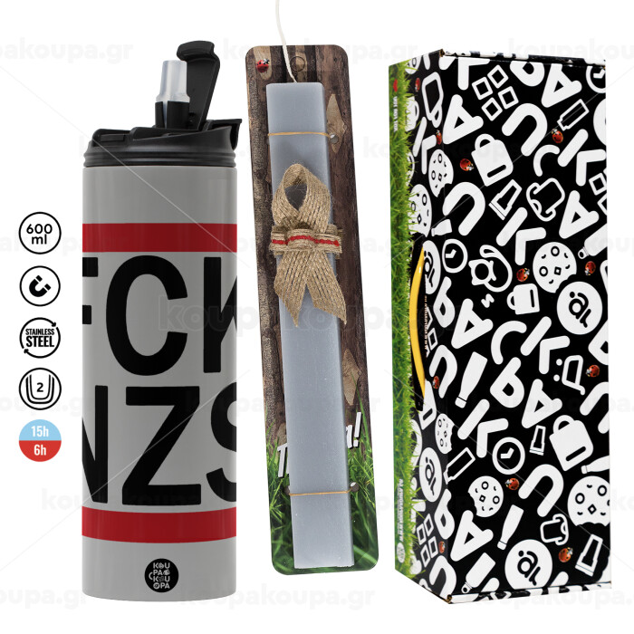 FCK NZS, Πασχαλινή Λαμπάδα με Travel Tumbler θερμό (600ml, BPA free) & κερί αρωματικό πλακέ (30cm) (ΓΚΡΙ)