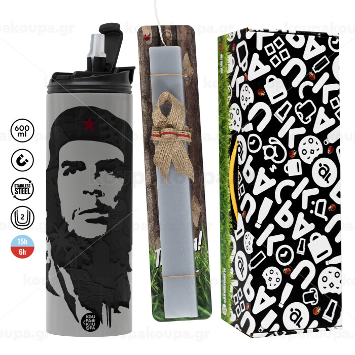 Che Guevara, Πασχαλινή Λαμπάδα με Travel Tumbler θερμό (600ml, BPA free) & κερί αρωματικό πλακέ (30cm) (ΓΚΡΙ)