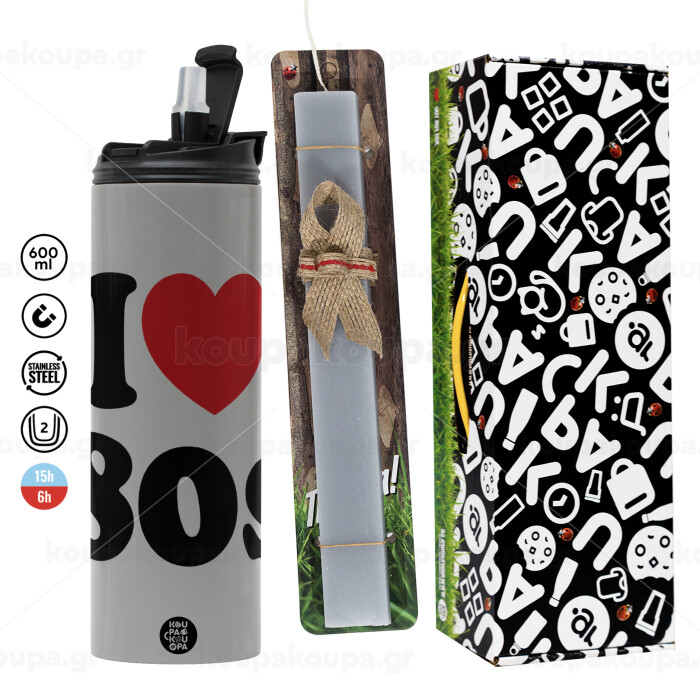 I Love 80s, Πασχαλινή Λαμπάδα με Travel Tumbler θερμό (600ml, BPA free) & κερί αρωματικό πλακέ (30cm) (ΓΚΡΙ)