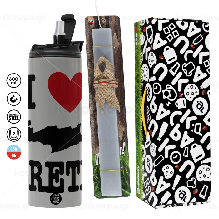 I Love Crete, Πασχαλινή Λαμπάδα με Travel Tumbler θερμό (600ml, BPA free) & κερί αρωματικό πλακέ (30cm) (ΓΚΡΙ)