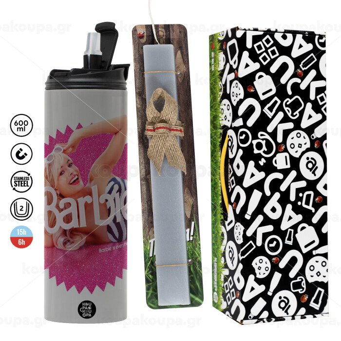 Barbie is everything, Πασχαλινή Λαμπάδα με Travel Tumbler θερμό (600ml, BPA free) & κερί αρωματικό πλακέ (30cm) (ΓΚΡΙ)