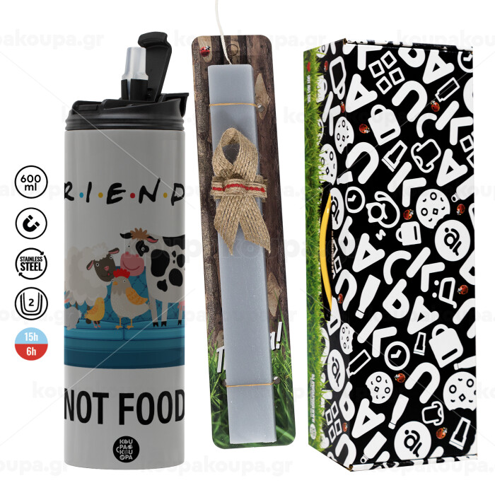 friends, not food, Πασχαλινή Λαμπάδα με Travel Tumbler θερμό (600ml, BPA free) & κερί αρωματικό πλακέ (30cm) (ΓΚΡΙ)