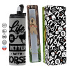 Life is Better with a Horses, Πασχαλινή Λαμπάδα με Travel Tumbler θερμό (600ml, BPA free) & κερί αρωματικό πλακέ (30cm) (ΓΚΡΙ)
