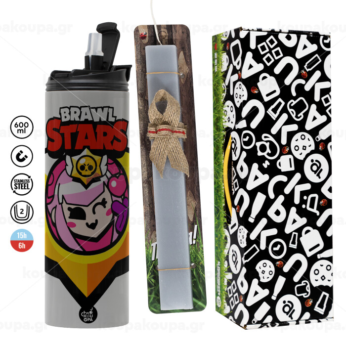 Brawl Stars Melodie, Πασχαλινή Λαμπάδα με Travel Tumbler θερμό (600ml, BPA free) & κερί αρωματικό πλακέ (30cm) (ΓΚΡΙ)