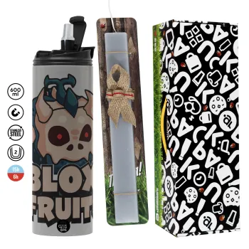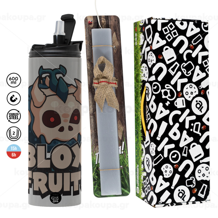 Roblox Blox Fruits, Πασχαλινή Λαμπάδα με Travel Tumbler θερμό (600ml, BPA free) & κερί αρωματικό πλακέ (30cm) (ΓΚΡΙ)