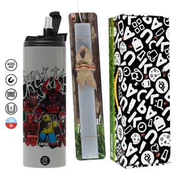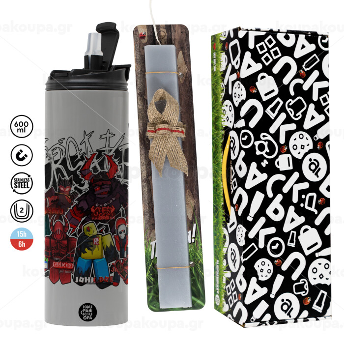 Roblox Forsaken, Πασχαλινή Λαμπάδα με Travel Tumbler θερμό (600ml, BPA free) & κερί αρωματικό πλακέ (30cm) (ΓΚΡΙ)