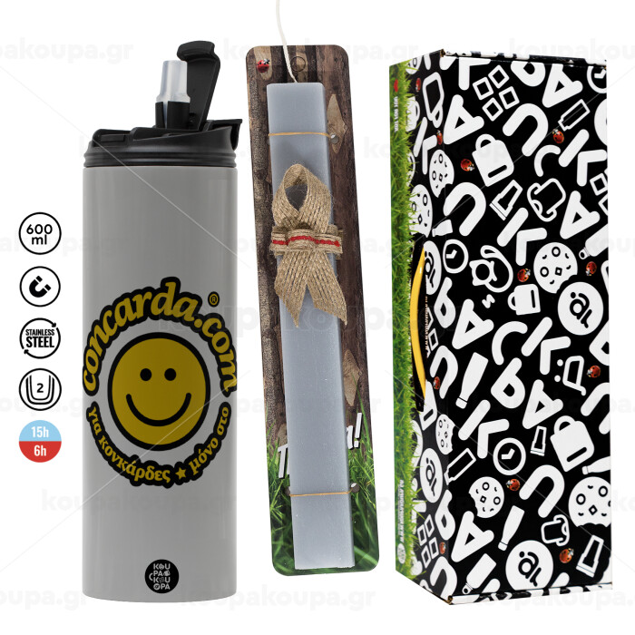 Concarda, Πασχαλινή Λαμπάδα με Travel Tumbler θερμό (600ml, BPA free) & κερί αρωματικό πλακέ (30cm) (ΓΚΡΙ)