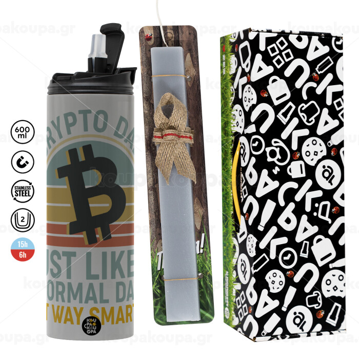 Crypto Dad, Πασχαλινή Λαμπάδα με Travel Tumbler θερμό (600ml, BPA free) & κερί αρωματικό πλακέ (30cm) (ΓΚΡΙ)