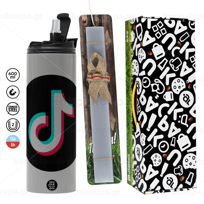 TikTok, Πασχαλινή Λαμπάδα με Travel Tumbler θερμό (600ml, BPA free) & κερί αρωματικό πλακέ (30cm) (ΓΚΡΙ)