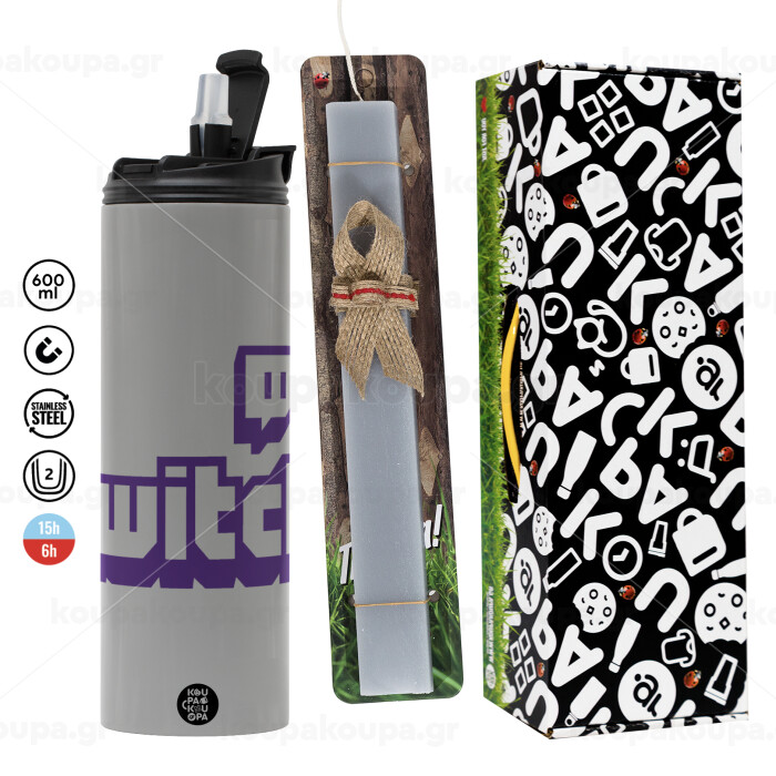 Twitch, Πασχαλινή Λαμπάδα με Travel Tumbler θερμό (600ml, BPA free) & κερί αρωματικό πλακέ (30cm) (ΓΚΡΙ)