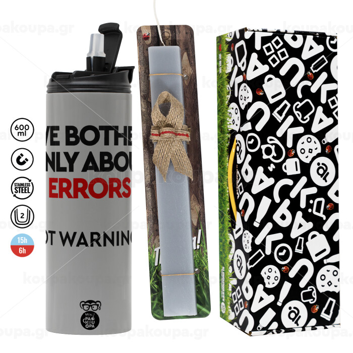 We bother only about errors, not warnings, Πασχαλινή Λαμπάδα με Travel Tumbler θερμό (600ml, BPA free) & κερί αρωματικό πλακέ (30cm) (ΓΚΡΙ)