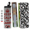 KEEP CALM  and carry on, Πασχαλινή Λαμπάδα με Travel Tumbler θερμό (600ml, BPA free) & κερί αρωματικό πλακέ (30cm) (ΓΚΡΙ)