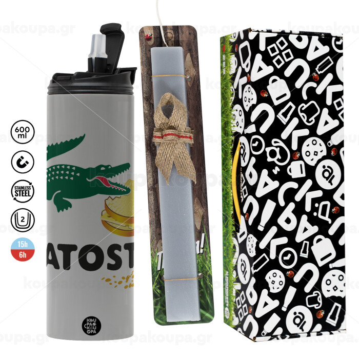 Latoste, Πασχαλινή Λαμπάδα με Travel Tumbler θερμό (600ml, BPA free) & κερί αρωματικό πλακέ (30cm) (ΓΚΡΙ)