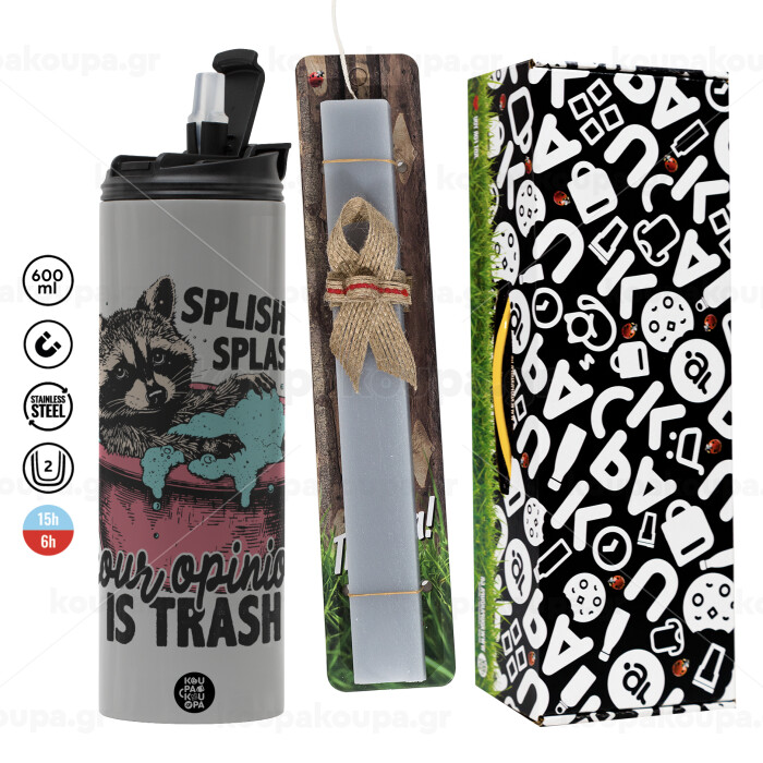 Splish splash your opinion is trash, Πασχαλινή Λαμπάδα με Travel Tumbler θερμό (600ml, BPA free) & κερί αρωματικό πλακέ (30cm) (ΓΚΡΙ)