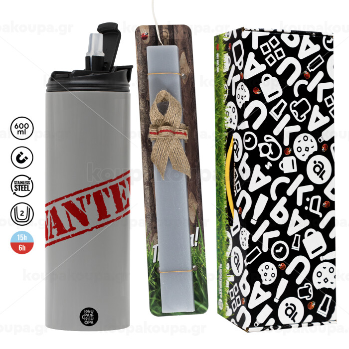 Wanted, Πασχαλινή Λαμπάδα με Travel Tumbler θερμό (600ml, BPA free) & κερί αρωματικό πλακέ (30cm) (ΓΚΡΙ)