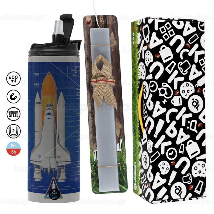 Nasa Space Shuttle, Πασχαλινή Λαμπάδα με Travel Tumbler θερμό (600ml, BPA free) & κερί αρωματικό πλακέ (30cm) (ΓΚΡΙ)