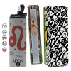 Ζώδια Λέων, Πασχαλινή Λαμπάδα με Travel Tumbler θερμό (600ml, BPA free) & κερί αρωματικό πλακέ (30cm) (ΓΚΡΙ)