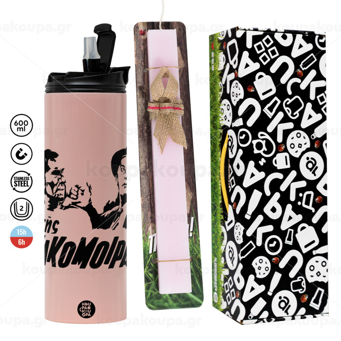 Της κακομοίρας, Πασχαλινή Λαμπάδα με ΡΟΖ Travel Tumbler θερμό (600ml, BPA free) & κερί αρωματικό πλακέ (30cm) (ΡΟΖ)