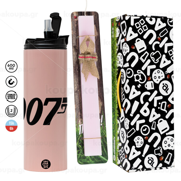 James Bond 007, Πασχαλινή Λαμπάδα με ΡΟΖ Travel Tumbler θερμό (600ml, BPA free) & κερί αρωματικό πλακέ (30cm) (ΡΟΖ)