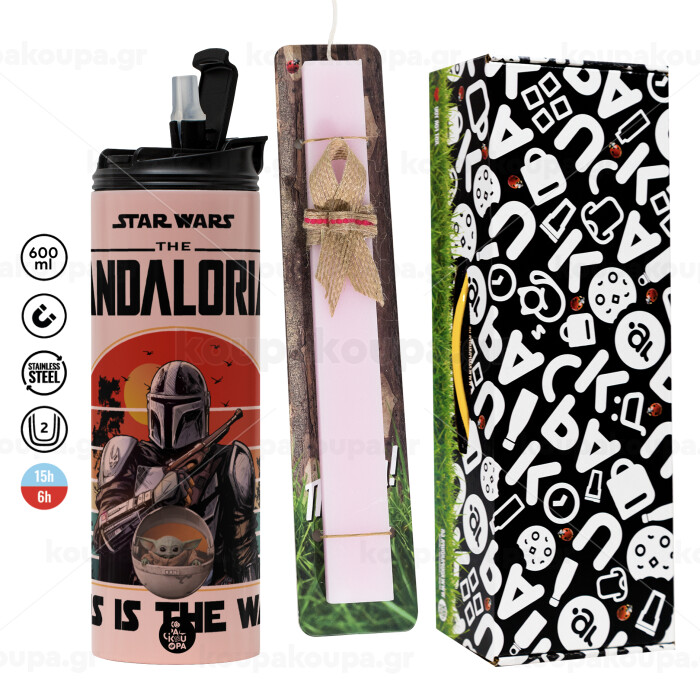 Mandalorian, Πασχαλινή Λαμπάδα με ΡΟΖ Travel Tumbler θερμό (600ml, BPA free) & κερί αρωματικό πλακέ (30cm) (ΡΟΖ)