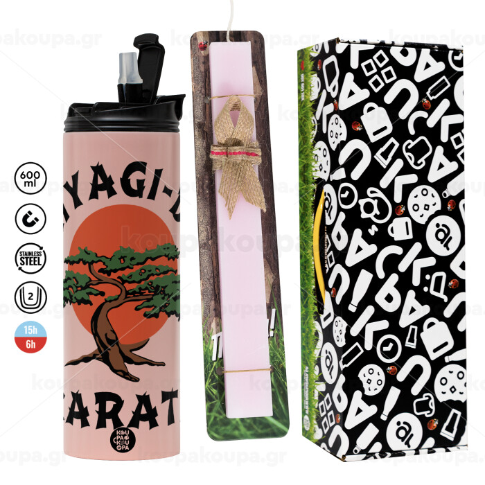 Miyagi-do karate, Πασχαλινή Λαμπάδα με ΡΟΖ Travel Tumbler θερμό (600ml, BPA free) & κερί αρωματικό πλακέ (30cm) (ΡΟΖ)