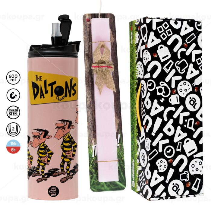 The Daltons, Πασχαλινή Λαμπάδα με ΡΟΖ Travel Tumbler θερμό (600ml, BPA free) & κερί αρωματικό πλακέ (30cm) (ΡΟΖ)