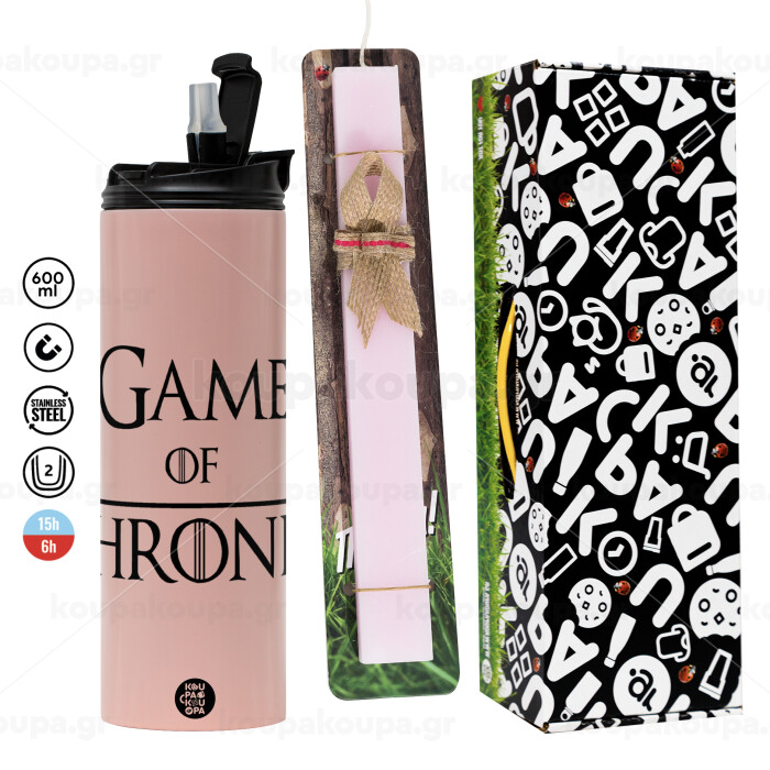 Game of Thrones, Πασχαλινή Λαμπάδα με ΡΟΖ Travel Tumbler θερμό (600ml, BPA free) & κερί αρωματικό πλακέ (30cm) (ΡΟΖ)