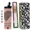 GOT House of Starks, winter coming, Πασχαλινή Λαμπάδα με ΡΟΖ Travel Tumbler θερμό (600ml, BPA free) & κερί αρωματικό πλακέ (30cm) (ΡΟΖ)