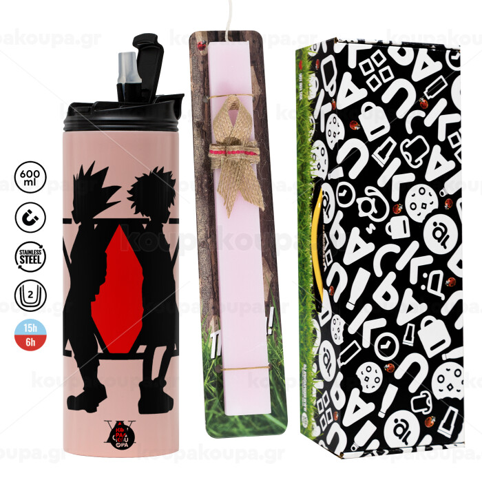 hunter x hunter, Πασχαλινή Λαμπάδα με ΡΟΖ Travel Tumbler θερμό (600ml, BPA free) & κερί αρωματικό πλακέ (30cm) (ΡΟΖ)