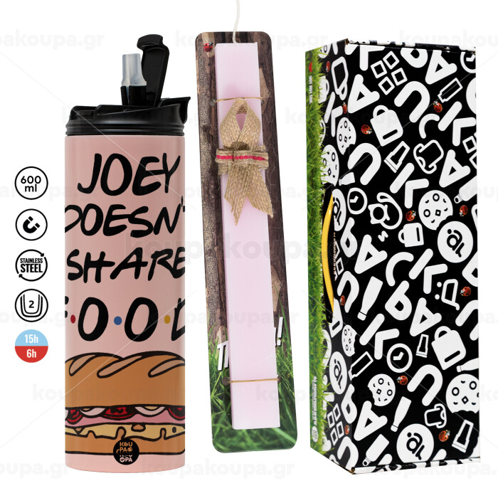 Joey Doesn't Share Food, Πασχαλινή Λαμπάδα με ΡΟΖ Travel Tumbler θερμό (600ml, BPA free) & κερί αρωματικό πλακέ (30cm) (ΡΟΖ)