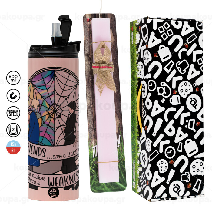 Wednesday window, Πασχαλινή Λαμπάδα με ΡΟΖ Travel Tumbler θερμό (600ml, BPA free) & κερί αρωματικό πλακέ (30cm) (ΡΟΖ)