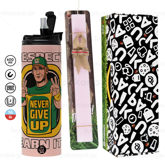 John Cena, Πασχαλινή Λαμπάδα με ΡΟΖ Travel Tumbler θερμό (600ml, BPA free) & κερί αρωματικό πλακέ (30cm) (ΡΟΖ)