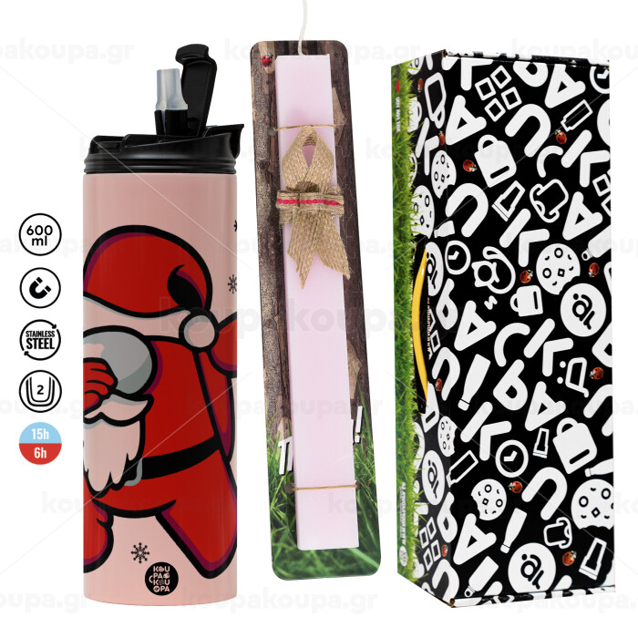 Among US Xmas, Πασχαλινή Λαμπάδα με ΡΟΖ Travel Tumbler θερμό (600ml, BPA free) & κερί αρωματικό πλακέ (30cm) (ΡΟΖ)